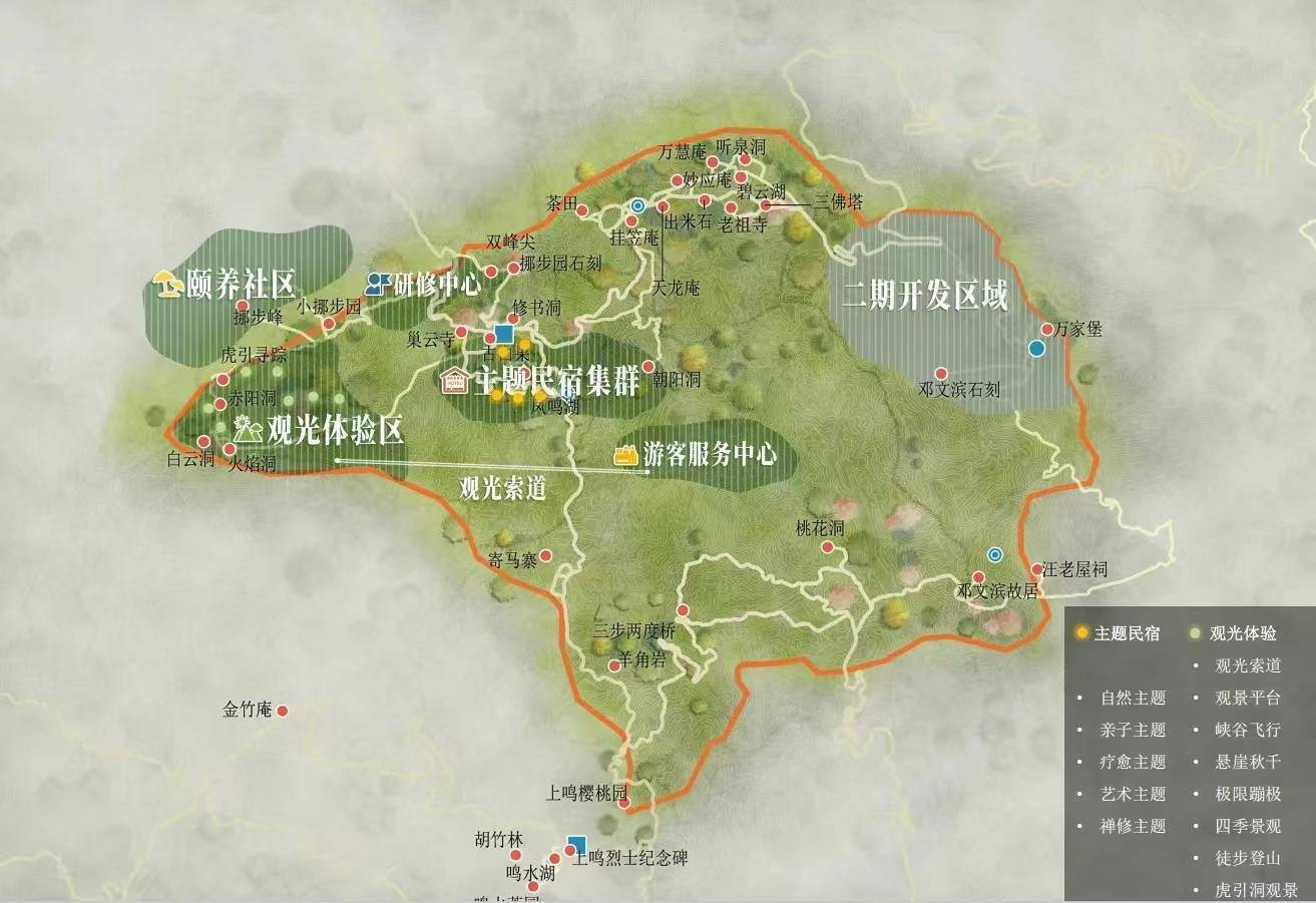 其中,挪步园文旅综合开发项目由湖北天逸集团投资建设,协议总投资30亿元。该项目依托挪步园独特的自然与文化资源,以“文化+生态+业态”三重赋能为路径,采取整体规划、分期实施的方式推进。一期计划投资13.8亿元,聚焦凤鸣湖和虎引洞区域,建设民宿集群和休闲度假区,引入观光缆车、低空飞行、观景平台、悬崖秋千等体验业态,并在周边配套建设康养社区,打造集度假区与颐养功能于一体的文旅新标杆。二期拟围绕水电站片区打造集休闲观光、度假及研学功能于一体的滨水景区。