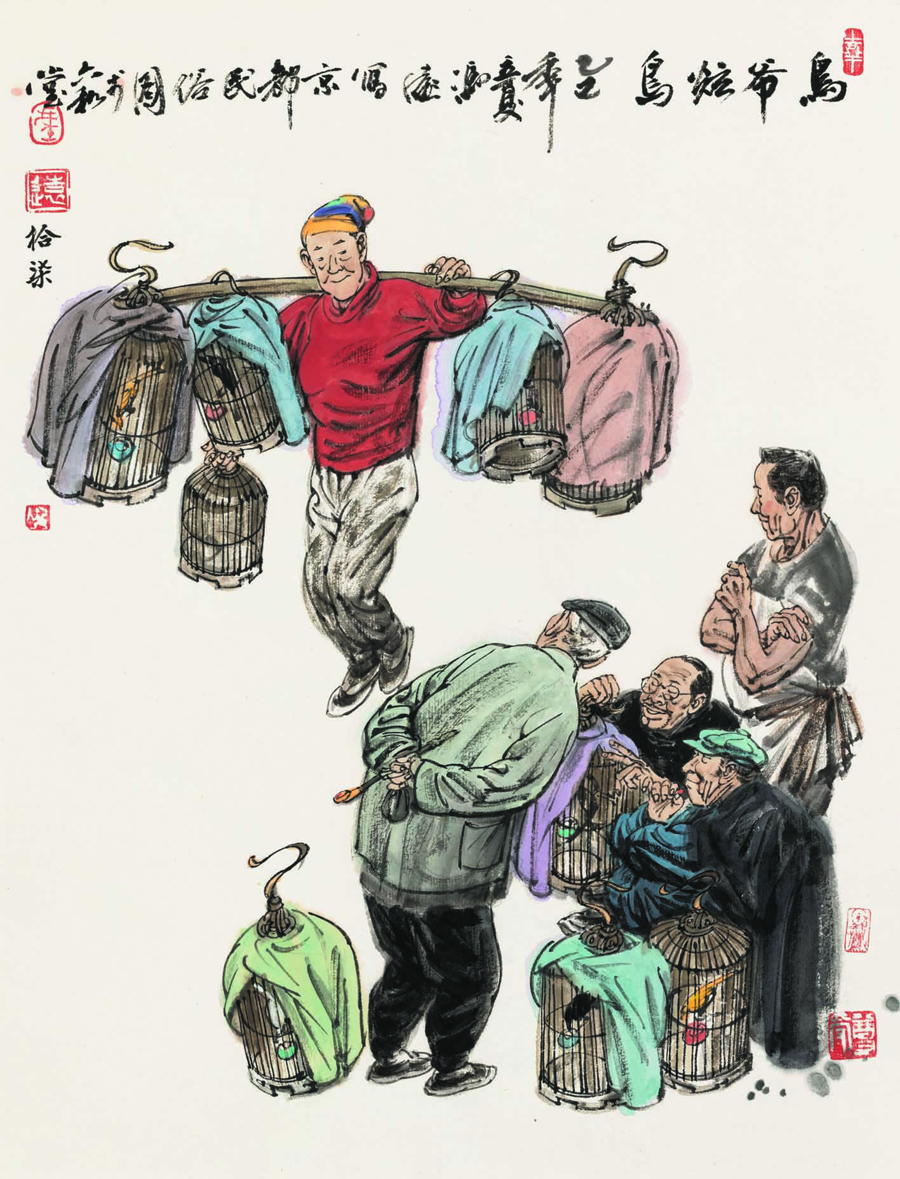 冯远《老北京烟火人家之鸟爷炫鸟》